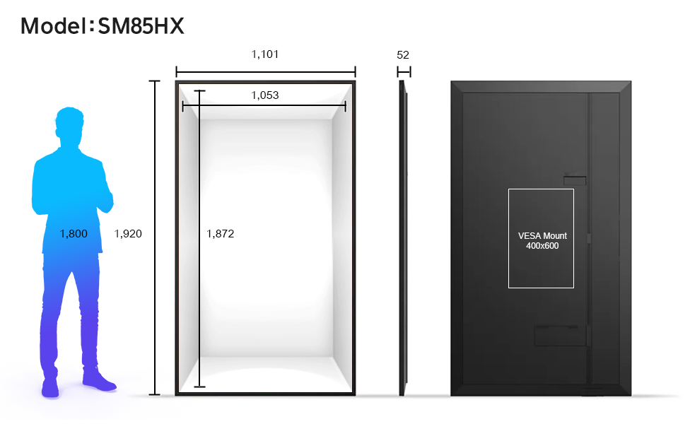 85인치, 55인치, 32인치 등 다양한 크기로 출시되어 비즈니스 환경에 맞춰 선택할 수 있습니다